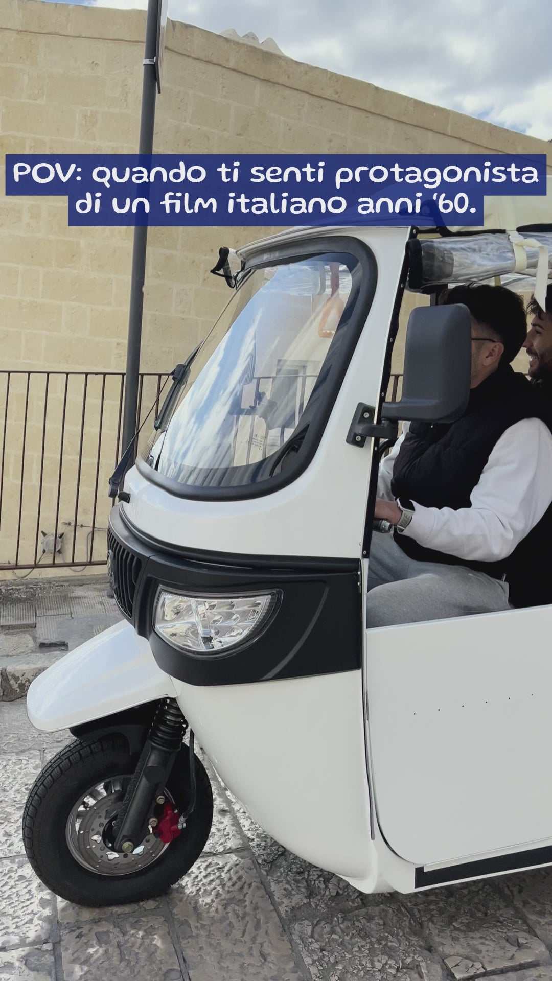Accompagnati da un membro del nostro staff, esplora i Sassi di Matera a bordo della nostra Ape Calessino, alla scoperta dei luoghi più autentici e suggestivi della città.